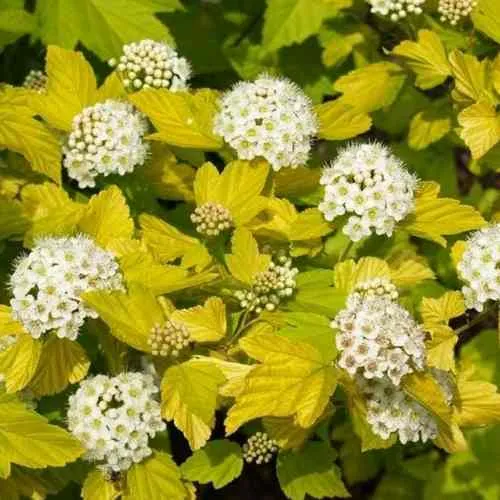 Листья пузыреплодника Дартс Голд имеют уникальную форму — 3-5 лопастные, с крупным размером и гофрированным краем. Молодые листья в начале сезона окрашиваются в яркие оранжево-желтые тона, которые в летний период переходят в зеленый цвет. Осенью же они демонстрируют желто-бронзовое окрашивание. Данное изменение цвета является важным декоративным элементом, способным разнообразить внешний вид вашего сада на протяжении всего сезона.