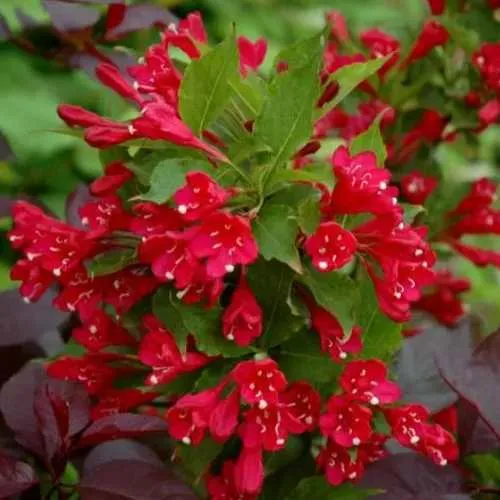 Саженцы 'Ред Принц' по праву могут считаться одним из самых эффектных цветущих растений. Цветы крупные, до 5 см в диаметре, имеют воронковидную форму и окрашены в насыщенный малиново-красный цвет. Цветение начинается в мае и продолжается до июня, после чего возможно повторное цветение с августа по сентябрь. Обильное цветение создаёт неповторимую атмосферу в вашем саду, привлекая не только взгляды, но и восхищенные отзывы гостей.