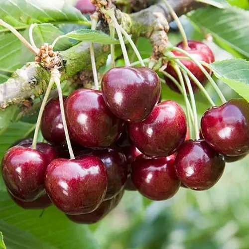 - Округлой формы, тёмно-красного цвета, легко отделяются от плодоножки. Мякоть сочная и нежная. Косточка яйцевидной, с острым верхом, формы, светло-коричневого цвета, просто извлекается;