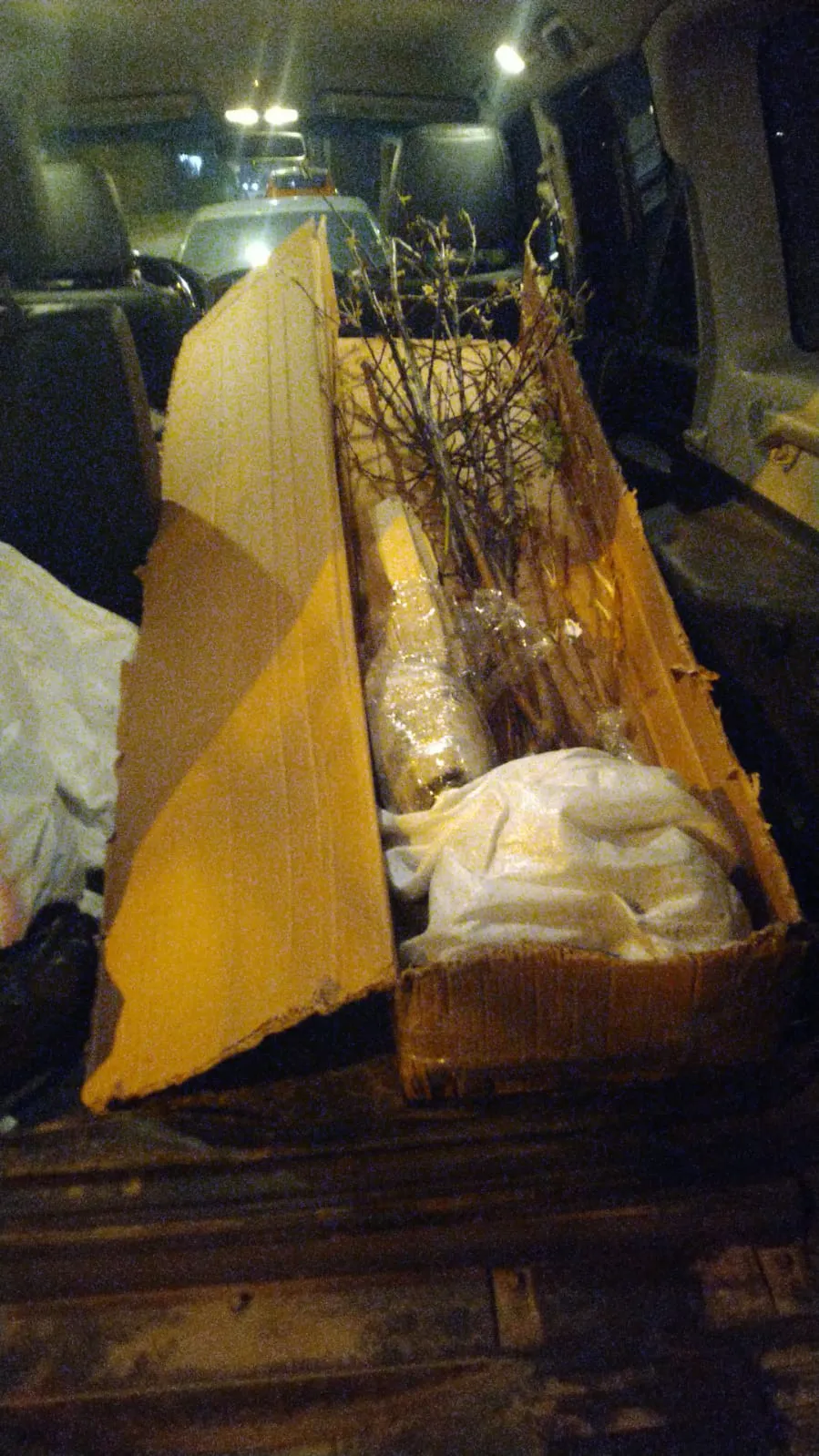Упаковано отлично, все подписано. Ежевика с почками. Плодовые высотой около 1,6м хорошие, ветки целые. Жалко только у одной верхушка сломалась, да и то только по тому что она была самая длинная около 2м. и ребята не укоротили ее а подогнули в коробке и где-то при транспортировке сломали кончик сантиметров 30 (ерунда в принципе). Саженцы уже зацветали !!!