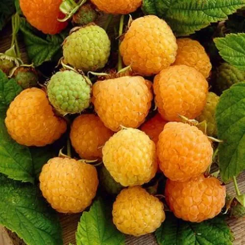 Ягоды малины "Желтый гигант" — это настоящая находка для гурманов. Яркого желтого цвета и тупоконической формы, они впечатляют своим размером: вес каждой ягоды колеблется от 5 до 10 г. Вкус их исключительно сладкий, десертный, с выраженным ароматом, который пробуждает аппетит. Мякоть сочная и приятная, что делает их идеальными не только для свежего употребления, но и для приготовления разнообразных десертов.