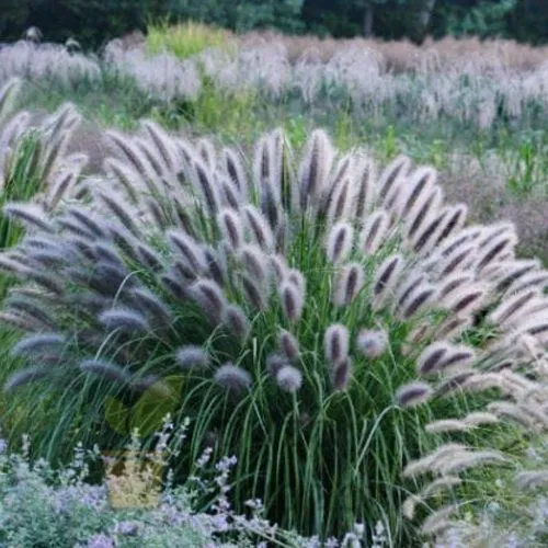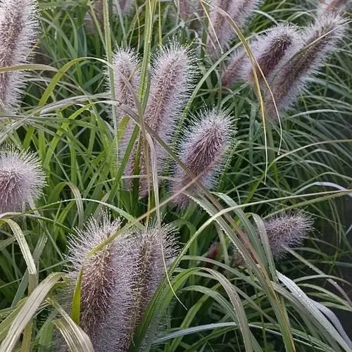 Пеннисетум Блэк Бьюти (Pennisetum alopecuroides Black Beauty) — этот сорт объединяет изысканную графичность формы с глубоким насыщенным окрасом. Его «бархатные» соцветия тёмно-пурпурного, почти угольно-чёрного цвета становятся центром композиции, особенно в лучах закатного солнца. А мягкая каскадная листва придаёт движению ландшафта текучую пластику.