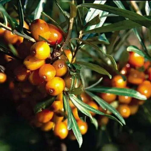 Ягоды сорта отличаются крупным размером (в среднем 0,7–0,8 г), насыщенным оранжевым цветом и ярким ароматом. Кожица тонкая, отрыв «мокрый», что упрощает переработку. Вкус кисловатый, но гармоничный, благодаря чему плоды одинаково хороши для употребления свежими и для приготовления сока, варенья, морса или масла. Содержание витамина C колеблется от 43 до 102 мг%, что делает сорт ценным источником природных антиоксидантов.