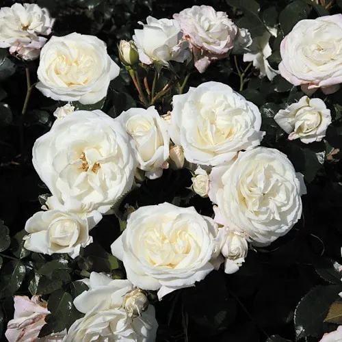 Роза Алабастер (Alabaster) — это результат точной немецкой селекции от Evers, созданная в 2007 году для тех, кто ищет сочетание элегантности и устойчивости в одном растении. Компактный куст высотой до 100 см и шириной около 70 см формирует густую, гармоничную крону. Листва плотная, тёмно-зелёная, с характерным блеском — отличный фон для пышных соцветий.