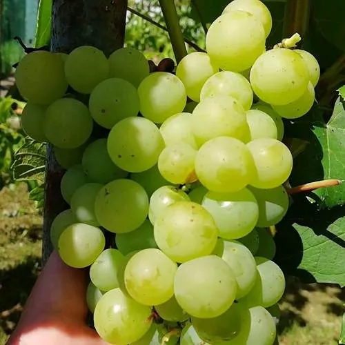 Саженцы винограда Ананасный, которые вы можете приобрести на нашей странице, обладают рядом уникальных характеристик, делающих их отличным выбором для садоводов. Крупные и красивые листья серовато-зеленого цвета придают этому сорту особую декоративность. Поверхность листа пузырчатая и плотная, а изогнутая в виде воронки листовая пластинка подчёркивает необычность сорта. Черешковая выемка в форме стрелы, а обоеполые цветы обеспечивают надежное опыление.