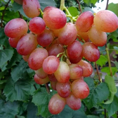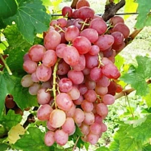 Ливия – это крупные грозди из розовых ягод, каждая из которых имеет овальную или яйцевидную форму. Ягоды достигают длины 28 мм и более, шириной 18–20 мм, что делает их настоящим украшением вашего сада. Но не только внешний вид делает этот сорт особенным; мясистой и сочной мякоти с ярко выраженным мускатным ароматом и высоким содержанием сахара мало кто может устоять. Кожица ягод почти не ощущается и не создает дискомфорта при еде, а семена, количество которых варьируется от 1 до 3 в ягоде, легко отделяются от мякоти.