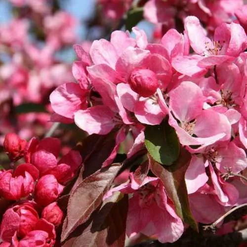 В мае Рудольф превращается в настоящее зрелище. Дерево покрывается множеством розовых цветков, которые выделяются своей нежностью и легкой махровостью. Бутоны раскрываются постепенно, создавая эффект воздушного облака, парящего над ветвями. Такое обильное цветение привлекает внимание и делает яблоню звездой весеннего сада. Этот период — настоящий подарок для тех, кто любит яркие природные краски.