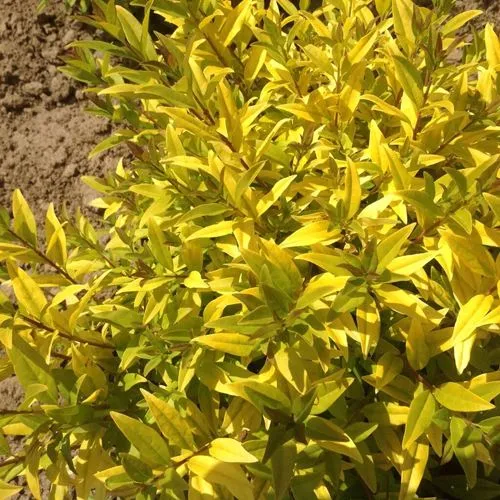 Листья Бирючина Ауреа – это его главная декоративная черта. Они обладают глубоким золотисто-зеленым цветом, который привлекает взгляд с первых дней вегетации. Осенью листья превращаются в яркие желтые и оранжевые оттенки, создавая гармонию с изменяющимися сезонами. Гладкая и глянцевая поверхность листьев придает кустарнику особую привлекательность, а удлиненная форма дополняет их изысканный внешний вид.